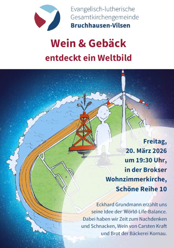 20.03. 19.30 „Wein und Gebäck“ in der Brokser Kirche, Thema: „World-Life-Balance“ mit Eckhard Grundmann